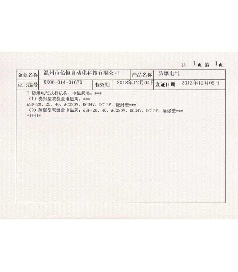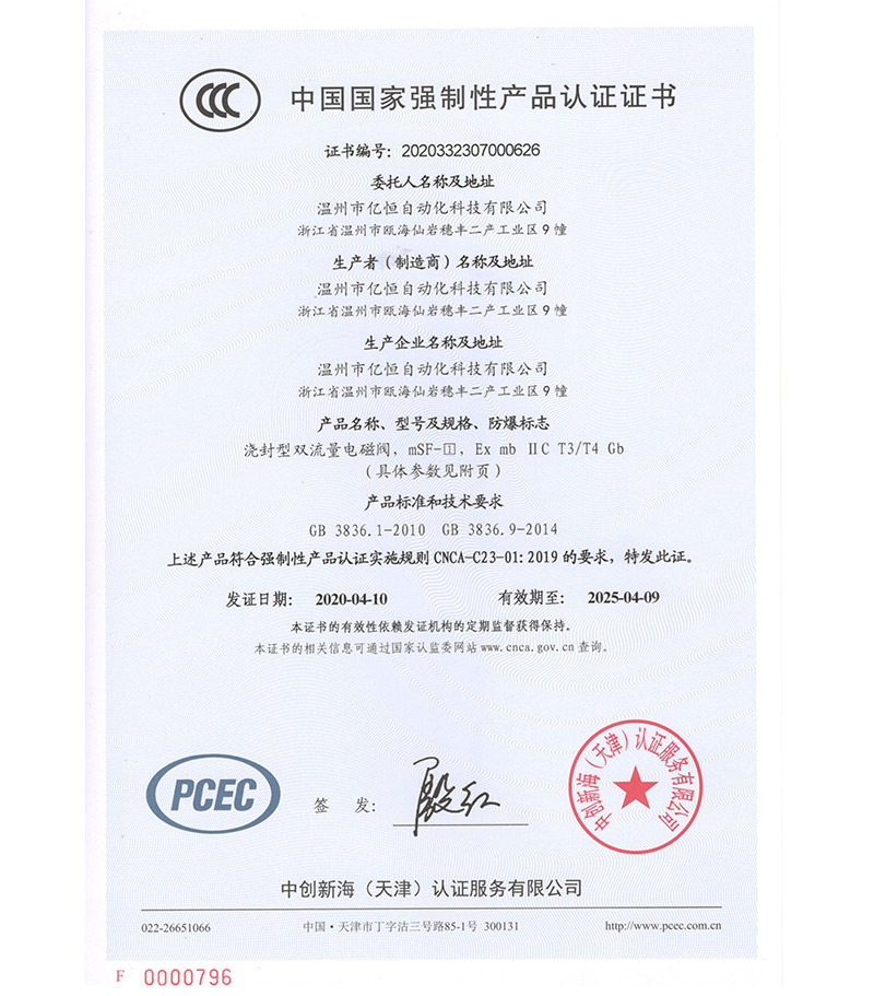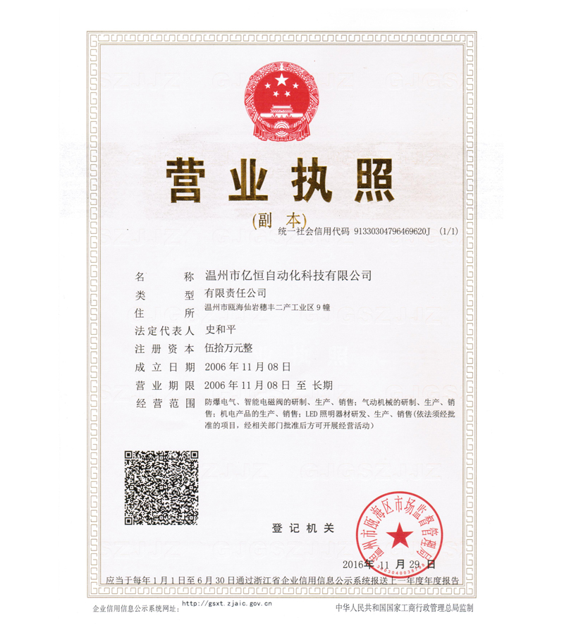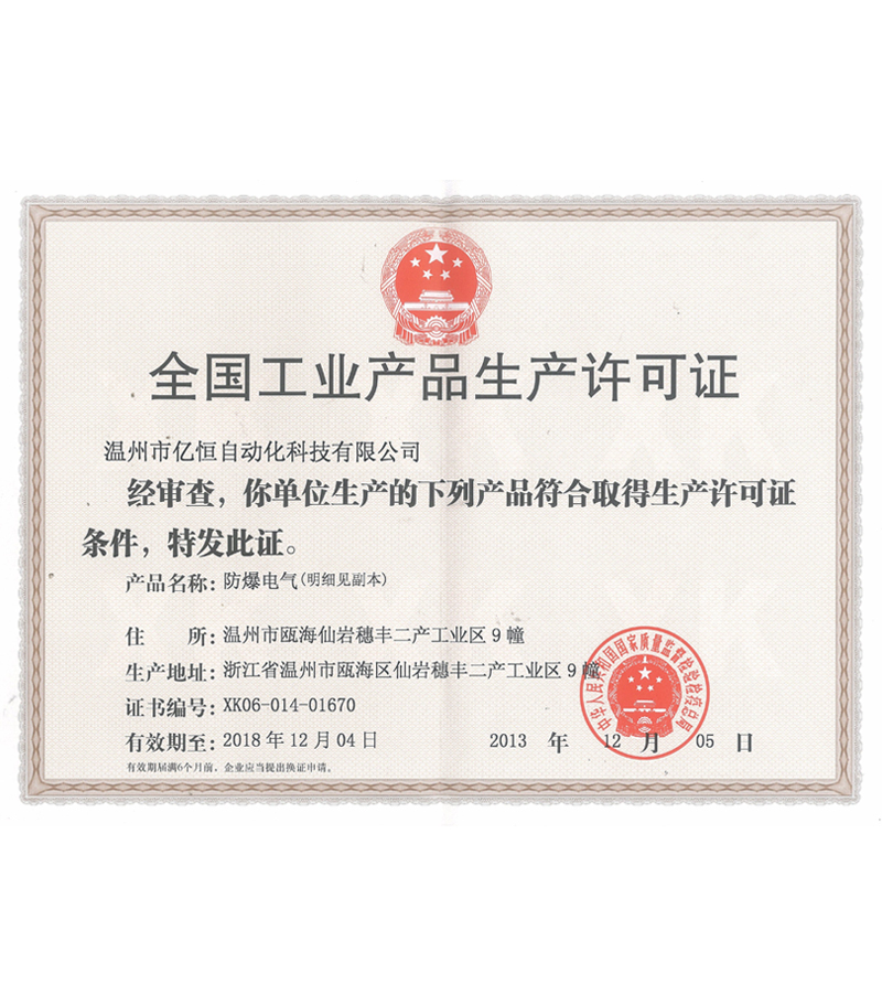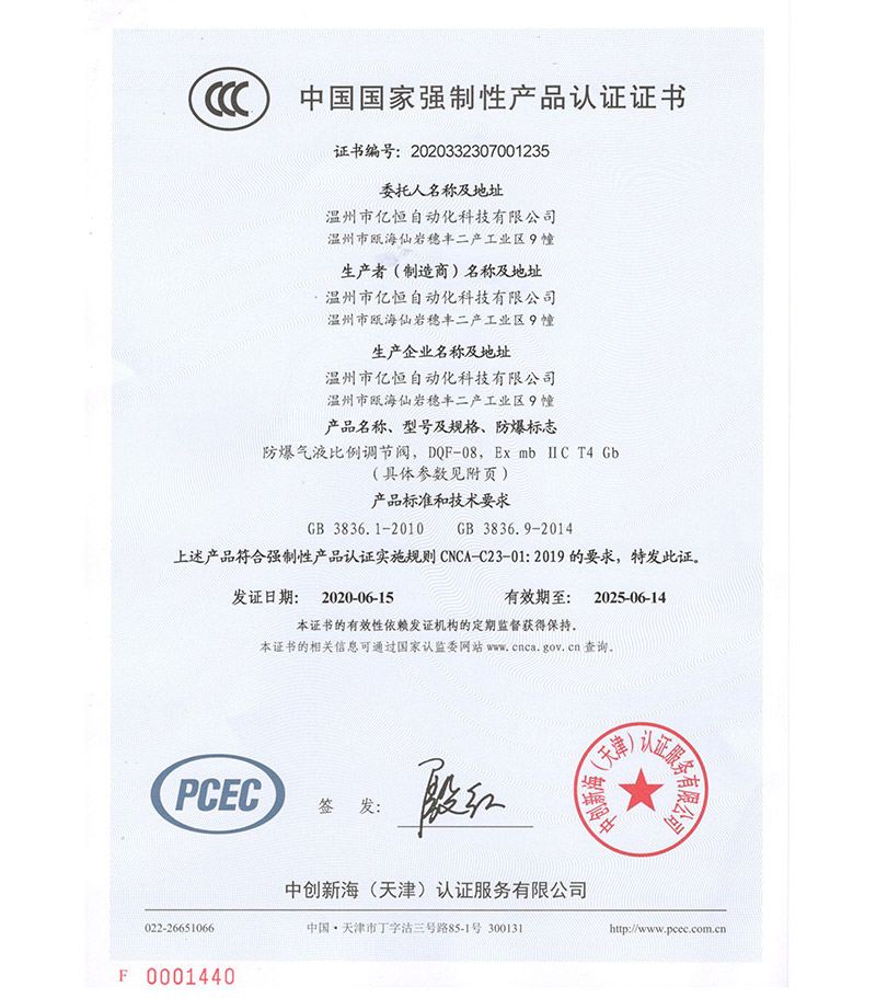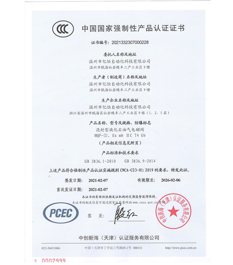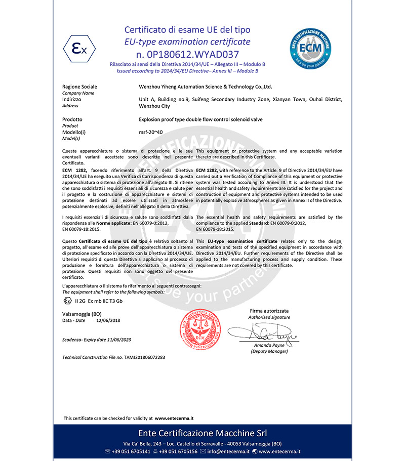 Wenzhou yiheng ATEX certificate