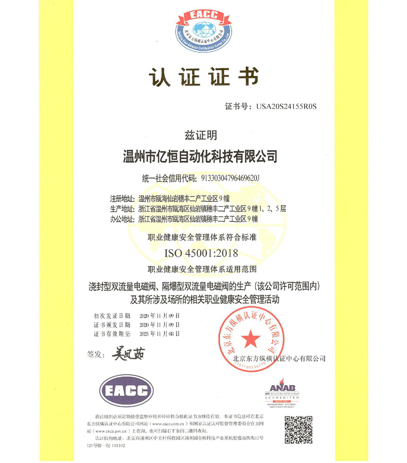 45001 certification in Chinese