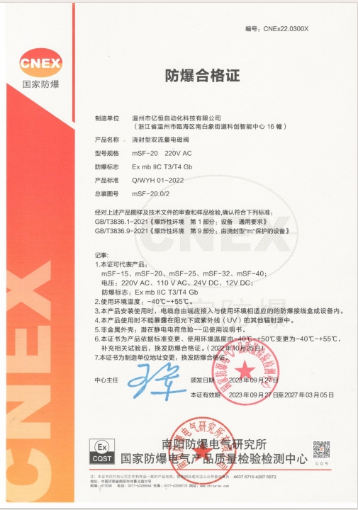 mSFzn防爆合格证